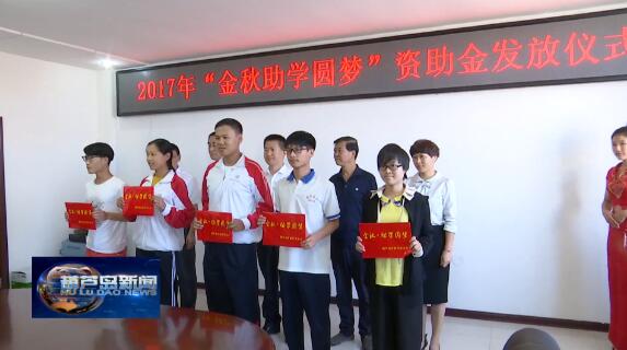 2017年8月25日上午,市教育基金会2017年“金秋助学圆梦”资助金发放仪式在市教育局举行,这是市教育基金会成立后开展的首次“金秋助学圆梦”公益活动。本次活动为50名即将迈入高等学府的家庭困难学生提供人均3000元的助学金,累计资助金额15万元,其中葫芦岛中盛集团建筑安装工程有限公司作为市教育基金会理事单位捐款5万元。副市长朱云出席活动并为受助学生代表发放助学金。